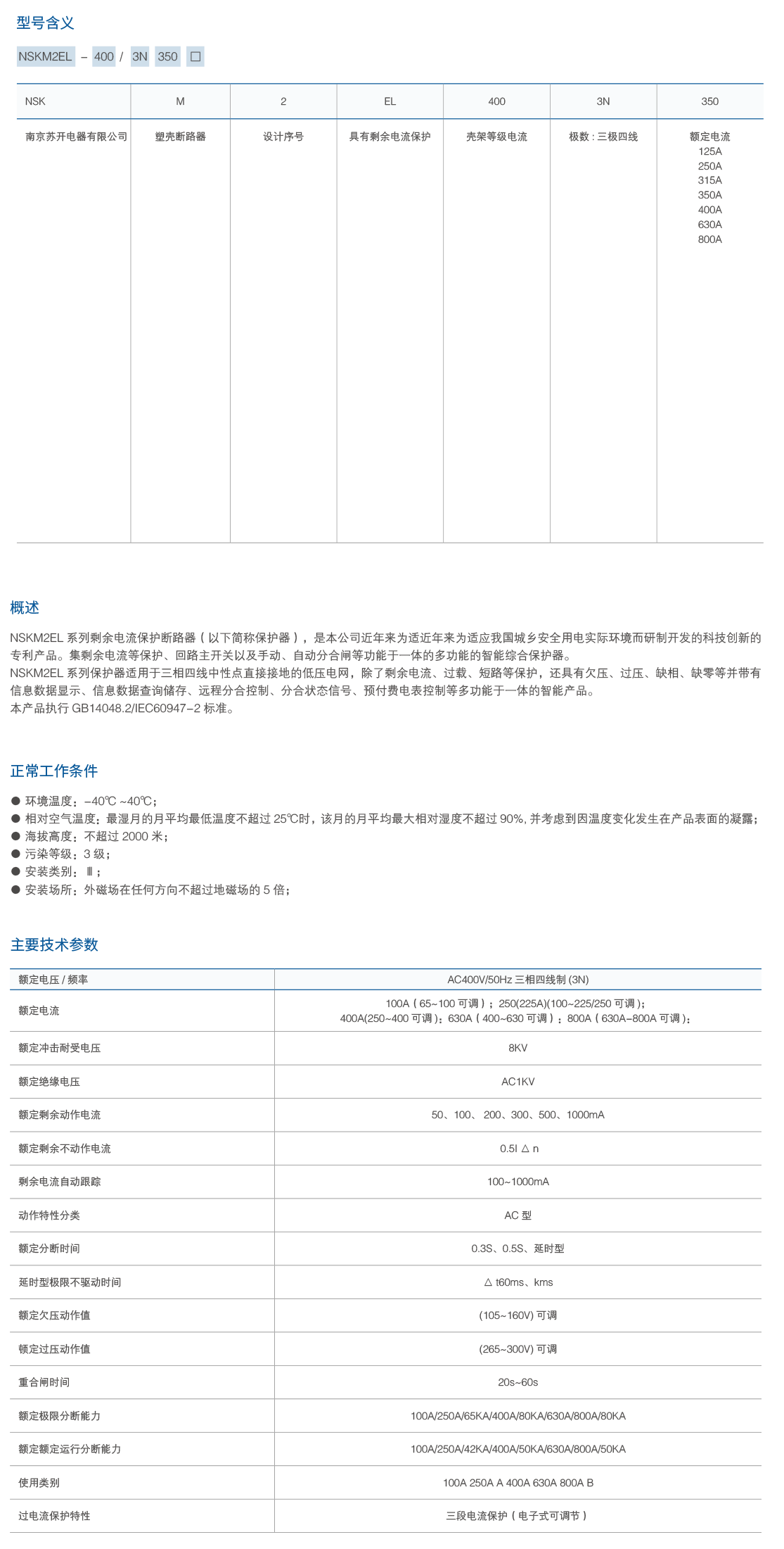 NSKM2EL剩余电流保护断路器